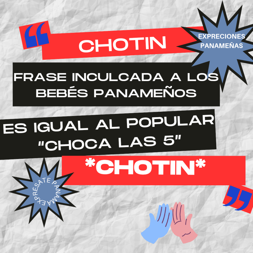 Read more: “Chotin” o “chotear”Decir como inició a utilizarse la palabra “chotin” en Panamá es bastante incierto. Lo que si sabemos es que la aprendemos desde que somos unos bebés, desde antes de aprender a hablar ya te van diciendo chotin para chocar las manos 🤝 o para chocar los puños 🤜🤛. Luego ya se convierte en el verbo…